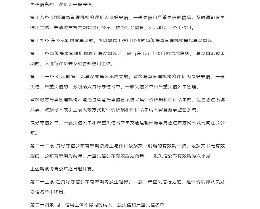 交通部发布监管领域规定,统一规范信用管理交通部发布监管领域规定,统一规范信用管理