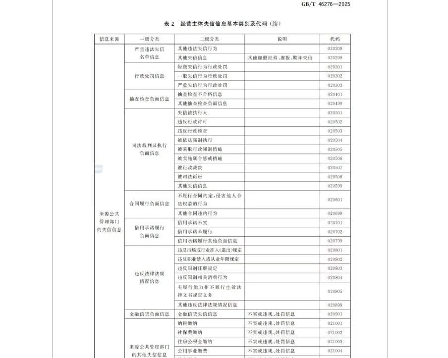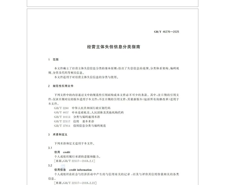 重磅!经营主体失信信息分类指南国标全文发